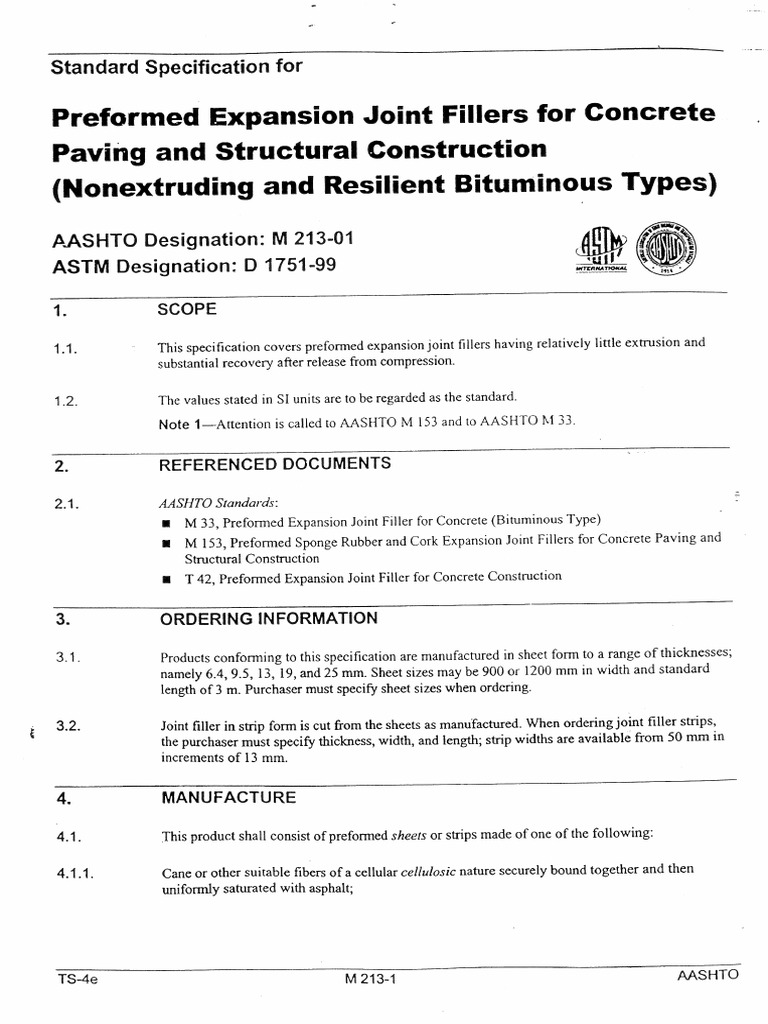 AASHTO M 21301 Standard Specification For Preformed Expansion Joint